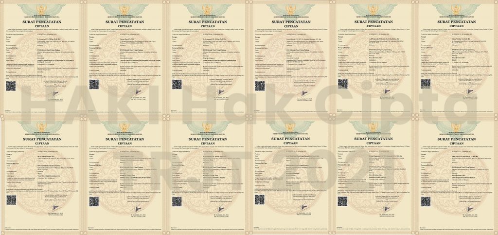 MAKASSAR, TRJT NEWS – Jelang akhir tahun 2021, sebanyak 13 sertifikasi hak Kekayaan Intelektual terdiri dari 12 judul tersertifikasi Hak Cipta dan 1 Granted-Paten Sederhana dari dosen tetap program studi (DTPS) dan mahasiwa prodi Sarjana Terapan Teknologi Rekayasa Jaringan Telekomunikasi (TRJT), Jurusan Teknik Elektro, Politeknik Negeri Ujung Pandang (PNUP) telah tercatat. Catatan Sertifikat Hak Kekayaan Intelektual (HAKI) ini diperoleh dari Direktorat Jenderal Kekayaan Intelektual Kementerian Hukum dan Hak Asasi Manusia. Ini merupakan prestasi yang luar biasa yang dicapai DTPS dan Mahasiswa TRJT dalam setahun terakhir.